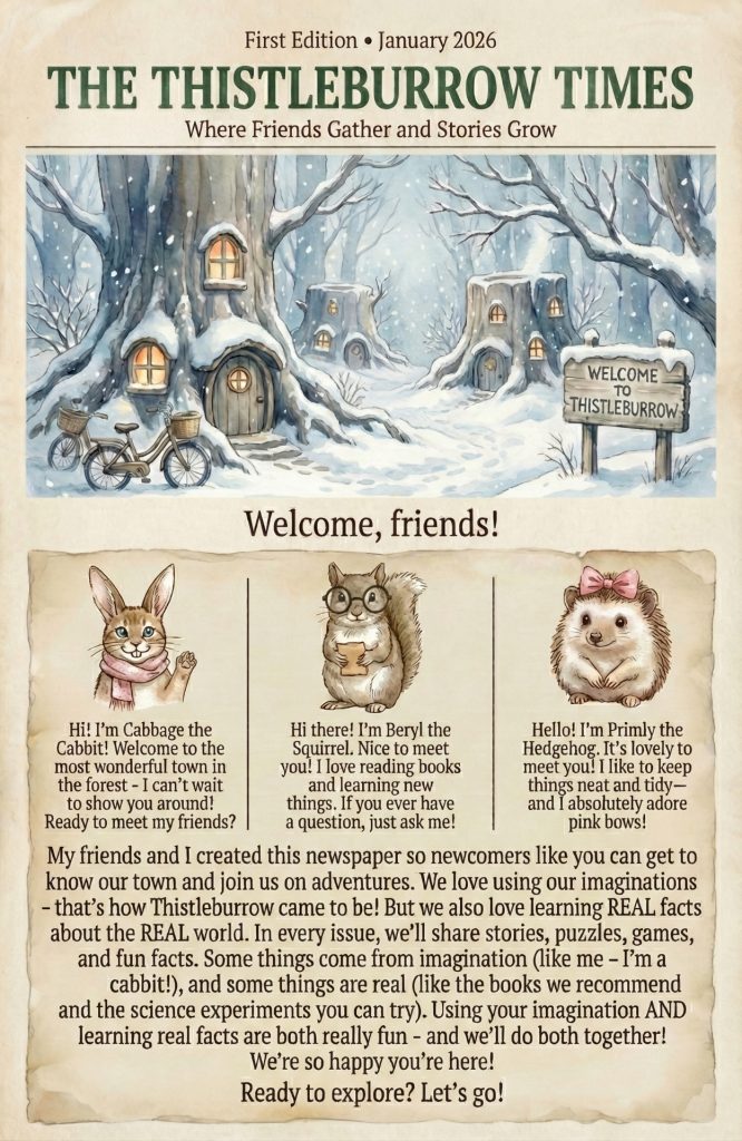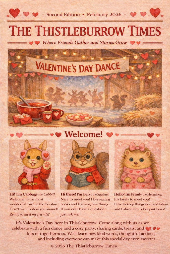 New tales, new discoveries, new activities, and a few surprises that connect directly to themes introduced last month. If January was the warm welcome, February is the moment the world of Thistleburrow begins to unfold.Subscribe now or purchase the February issue of The Thistleburrow Times and continue the journey with us.